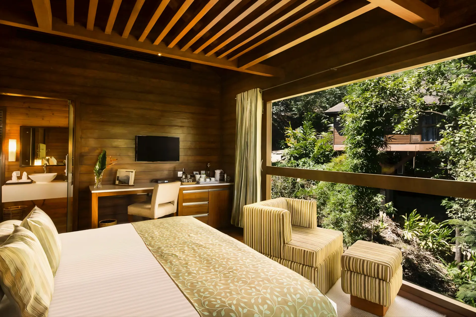 Set in the Western Ghats, Tamara Coorg is a luxury eco-resort where Wood Barn India delivered hillside timber cottages that merge wellness and sustainability. Completed in 2016 in Coorg, Karnataka, this hospitality project used glulam beams and tongue-and-groove joinery to withstand high rainfall and provide long-term strength. Each cottage reflects both comfort and carbon storage, offering an immersive guest experience. Tamara Coorg stands as a benchmark for eco-friendly resort design in India’s luxury hospitality market.